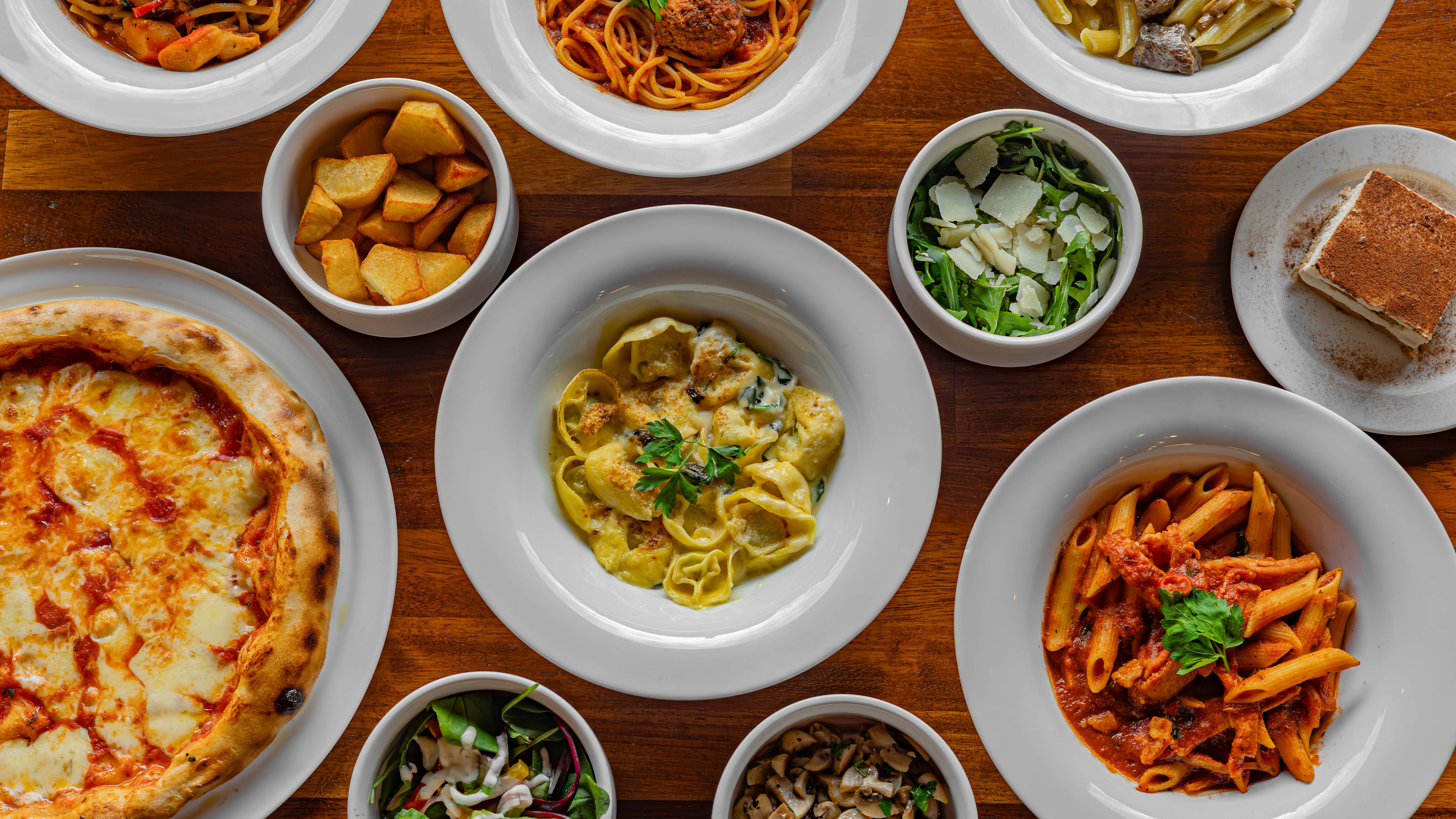 Selection of fresh vegetables, garlic, mozzarella and tomato sauce€15.00VegetarianParma