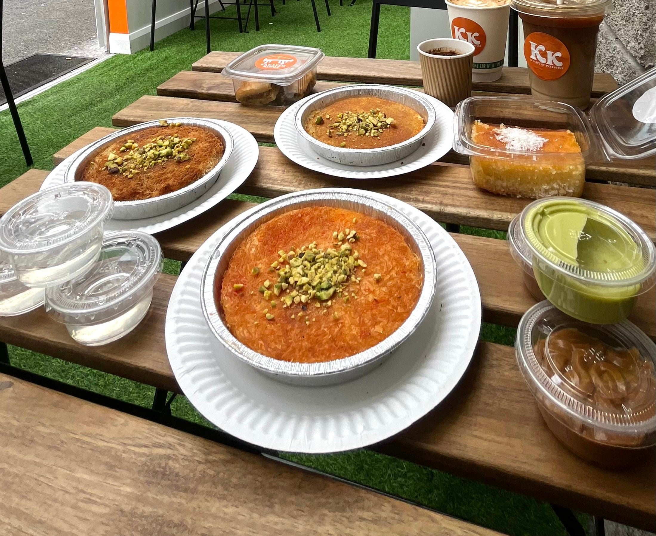 A Taste of Palestine, Kanafeh is a world famous Palestinian dessert made of vermicelli dough and a sweet cheese filling with syrup and pistachio finish!