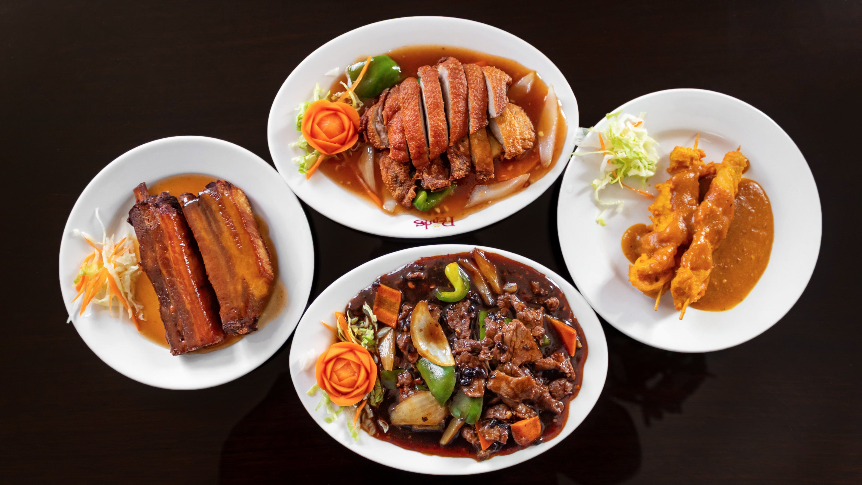Spare ribs, spring roll, crispy wonton, skewered chicken with satay sauce.€10.00Spare Ribs
