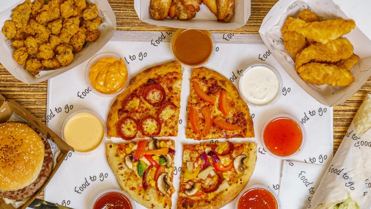 Any 5 large (14") set pizzas or with 4 toppings + 5 classic sides + 5 premium sides (6 pcs each) + 10 dips.€120.00Festive Deal