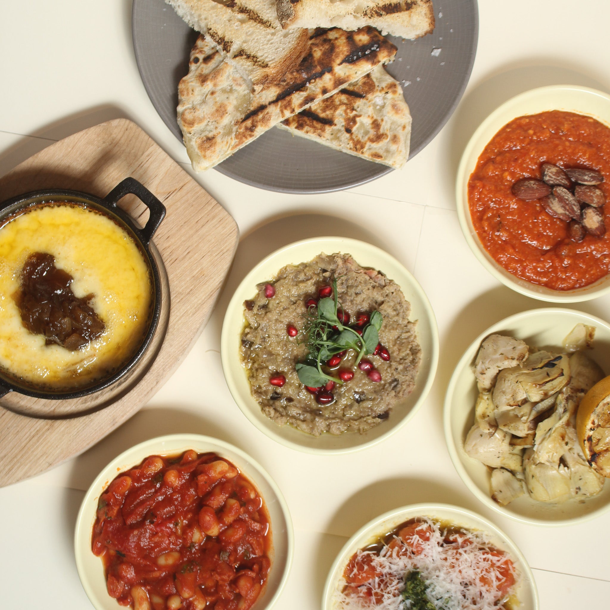Choose any 3 for 19.90 Fire-led plates, made to mix and match. From lighter bites to generous plates, everything is shaped by fire and built for the middle of the table. Served with grilled flatbread and artisan bread.
